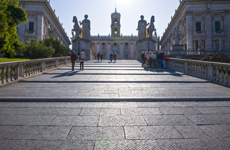 ROME, ITALY - JANUARY 27, 2010: Cordonata is a sloping road in Rome, Italy. It leads to piazza del Campidoglio.