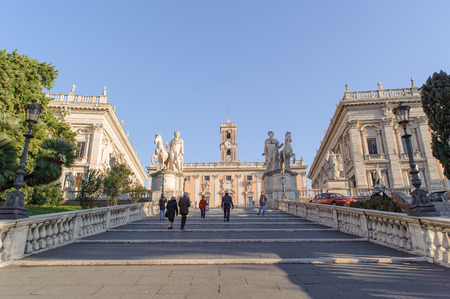Rome Italy April 6 2015: The Capitoline in Rome Italy. Capitol Hill one of the hills of ancient Rome where in ancient times was the Senate.