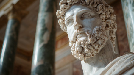 Detailed marble sculpture of an ancient greek philosopher
