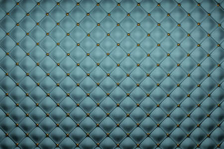 Luxury blue leather upholstery background with gold buttons. 3d render