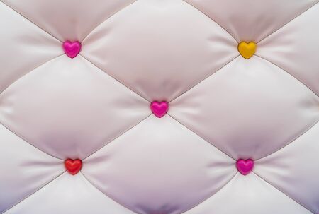 Pattern used in sofa texturing. Blue upholstery with golden sphere buttons. 3d illustration.