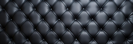 Black leather upholstery showcasing a classic tufted design with deep buttons forming a textured surface, ideal for luxurious backgrounds or furniture patterns