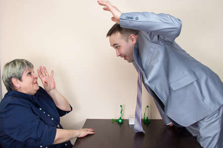 Stressed businessmen have problems and headaches with failure in what to expect.