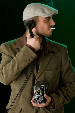 Old styled fashion photographer making a deal over the phone