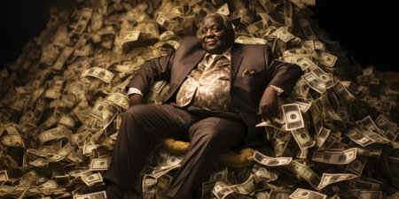 Billionaire on Huge Pile of Banknotes Rich and Prosperity Comeliness
