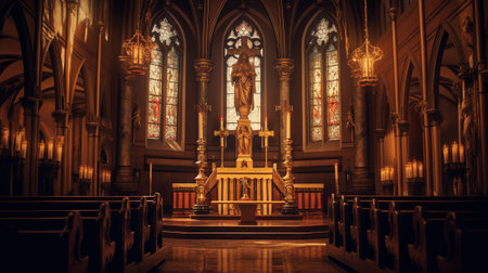 Gothic architecture illuminates spirituality inside famous basilica generated by artificial intelligence