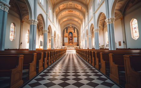 Stunning interior view of a grand church featuring ornate architecture, detailed gold accents, and serene ambiance, ideal for religious and cultural themes.