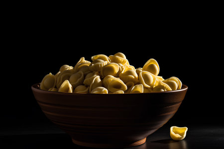 Orecchiette pasta in a bowl isolated on black background as package design element.