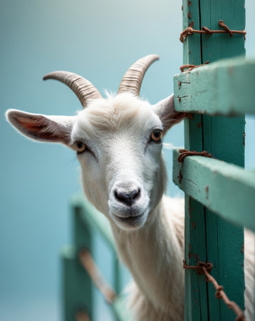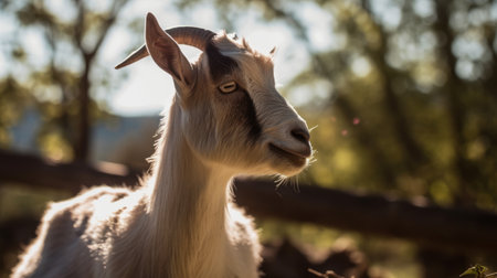 AI Generated. Goat Climbing Rustic Wooden Fence in Natural Light