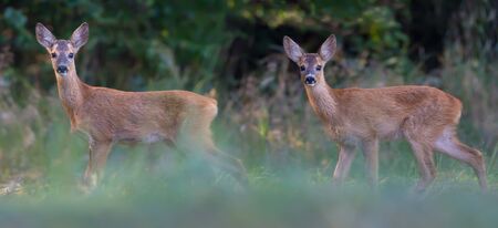 Roe deer in the meadow at sunset, Capreolus capreolus