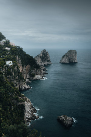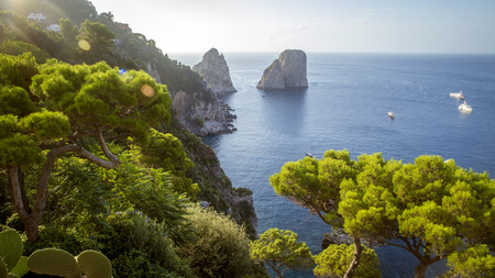 gorgeous landscape of famous faraglioni rocks on Capri island, Italy