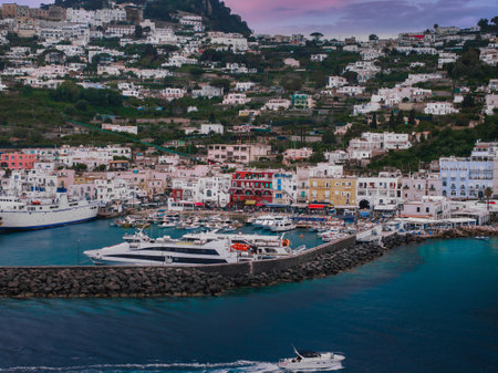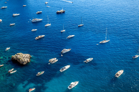 Aerial view of yachts and boats in Capri, Italy