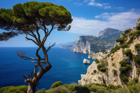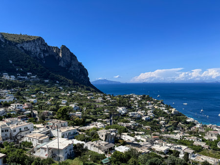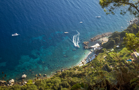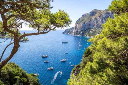Overlooking the beautiful coastline of the Capri Island in Italy in summer.