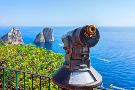 Telescope at Faraglioni in Tyrrhenian Sea on Capri Island, Italy