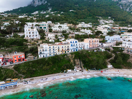Enjoy a stunning view of a charming coastal village nestled against the high cliffs of Capri Island