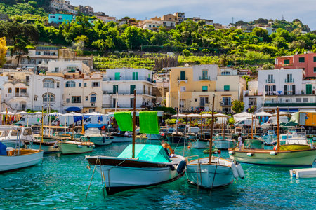 July 14 2021 - Capri, Italy: Port of the island Capri in the gulf of Naples