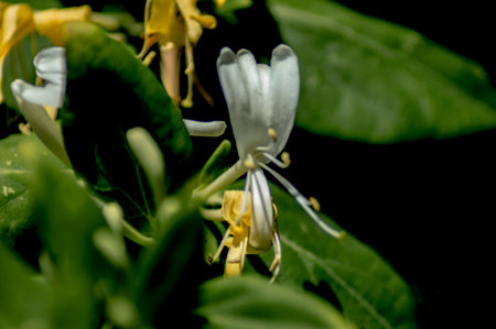 Detail of wild honeysuckle yellow flower blooming