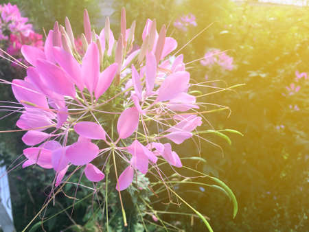 Light pink mix white spider flower / Rose queen flower is blooming in the garden under soft sunlight
