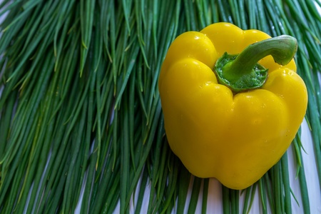 Chili fresh yellow color on green onion