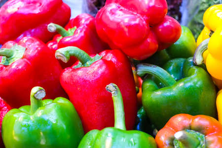 colorful fresh peppers in vegetable market