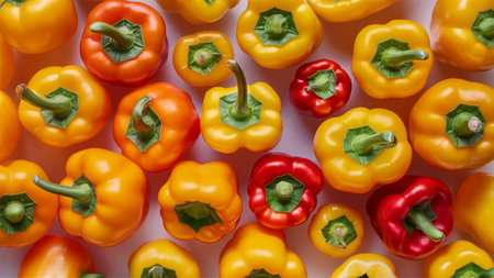 Abstract background of sweet peppers laid out on surface. AI generated.