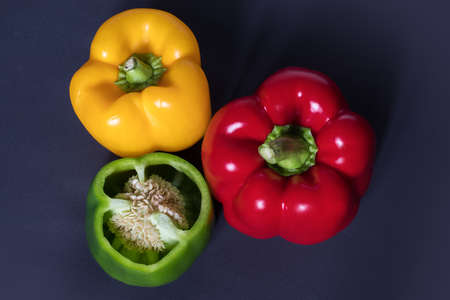 Fresh bell peppers of different colors, healthy vegetable vitamins