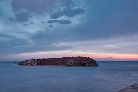 A sunken tanker off the coast of Odessa. Overcast dawn