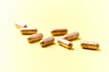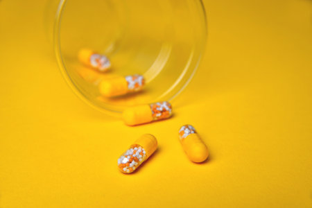 Capsules on a yellow background with copy space