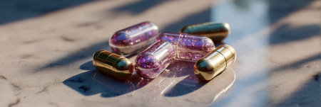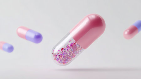 Modern capsules symbolize health and wellness, offering a path to vitality and a balanced lifestyle. Promote your brand with this image of care and wellbeing.