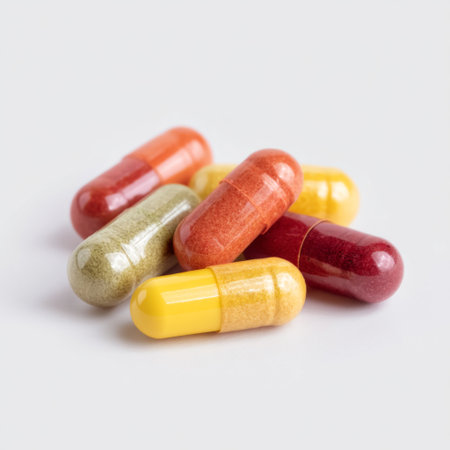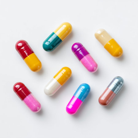 A collection of assorted colorful capsules displayed on a clean background, exemplifying themes of health, wellness, and nutrition in modern lifestyles.