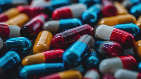 A collection of assorted colorful capsules against a clean white background, symbolizing health, wellness, and pharmaceutical advancements. Ideal for medical and health-related projects.