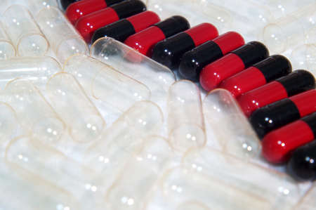 Red and black capsules among empty capsules
