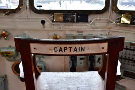 The picture of the military working as the marine captain for sailing the boat, the captain require skill like leadership, technical knowledge, management, weather awareness and safety focus. AIG43.