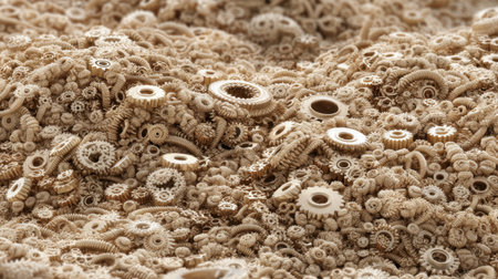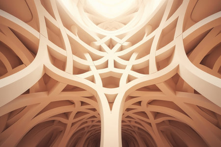 an intricate image showcasing an artificial fabric composed of multiple wires. the fabric features abstract organic shapes, reminiscent of careful woodwork and bone structures. rendered in cinema4d, the image captivates with its futuristic architecture and meticulous framing. ai generated
