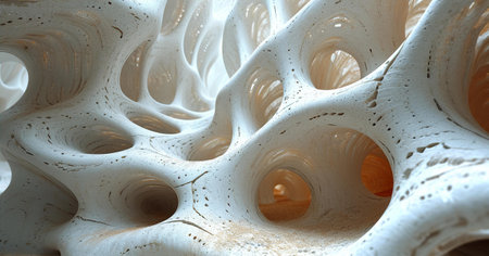 Abstract architectural texture with flowing shapes and hollow patterns creating depth.