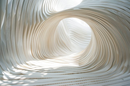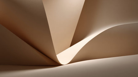 This image features an abstract arrangement of curved paper surfaces, showcasing soft shadows and gentle light highlights in warm beige tones for a modern aesthetic.