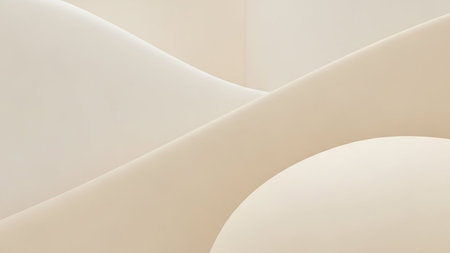 A minimalist abstract composition featuring softly curved geometric shapes in a palette of cream and beige tones, creating a serene and modern backdrop.