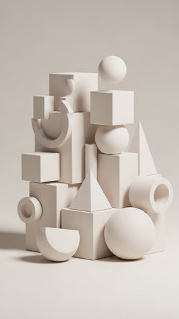 A visually striking abstract composition featuring a variety of geometric shapes and soft colors set against a neutral backdrop, perfect for modern design enthusiasts.