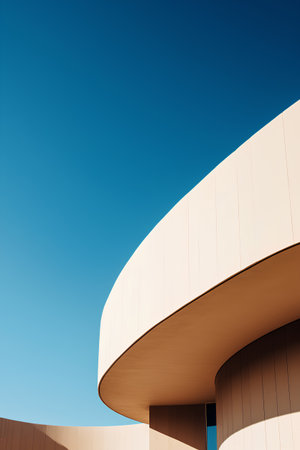 The Stunning Brown and White Concrete Building Embraced by a Clear Blue Sky --ar 3:2