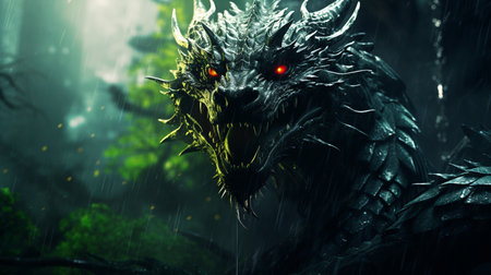 Green dragon symbol of Chinese new year, tatsu, Eastern mythology, strength, wisdom and good luck. imperial authority and celestial energy culture and folklore zodiac sign banner poster copy space