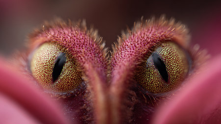 An insect with blue eyes is sitting on top of some flowers. Generative AI.