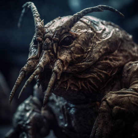monster art for the disney movie the curse of waterloo featuring hyper-detailed and realistic sculptures created in the style of unreal engine 5. these close-up shots capture the chaotic and intricate design of the monsters, showcasing the talent of artist serge marshennikov. shot on 70mm film, this artwork brings the world of dragoncore to life. ai generated