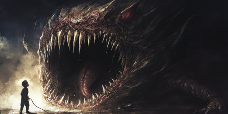 A child's nightmare of being swallowed by a giant creature, surrounded by darkness, as they try to escape its gaping mouth.