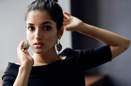 Portrait of a beautiful woman in a black dress in a vintage interior