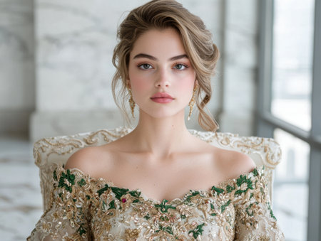 Portrait of a beautiful young woman in a luxurious evening dress.