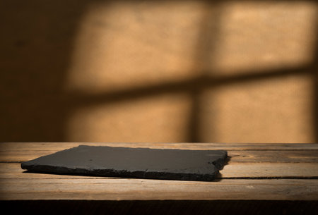 Stone plate placed on a wooden background, concept for composition