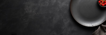 Black banner with empty black plate. Top view.