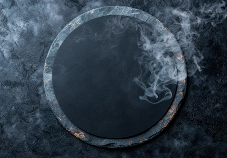 Rustic Elegance: Captivating Empty Slate Stone Plate on Dark Background