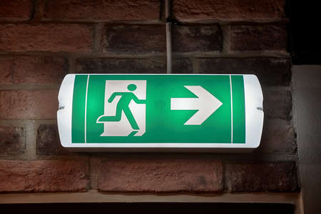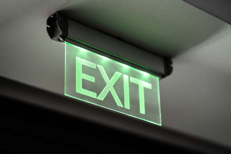 Emergency exit sign glowing in the dark