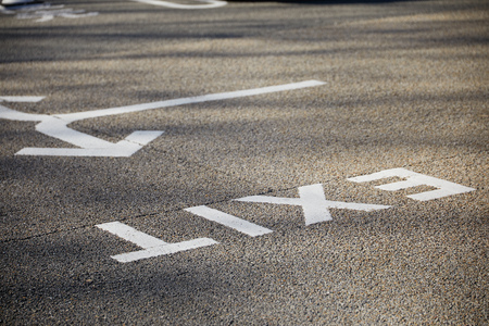 A tarmac road with the word, 'EXIT' and a directional arrow painted in white.